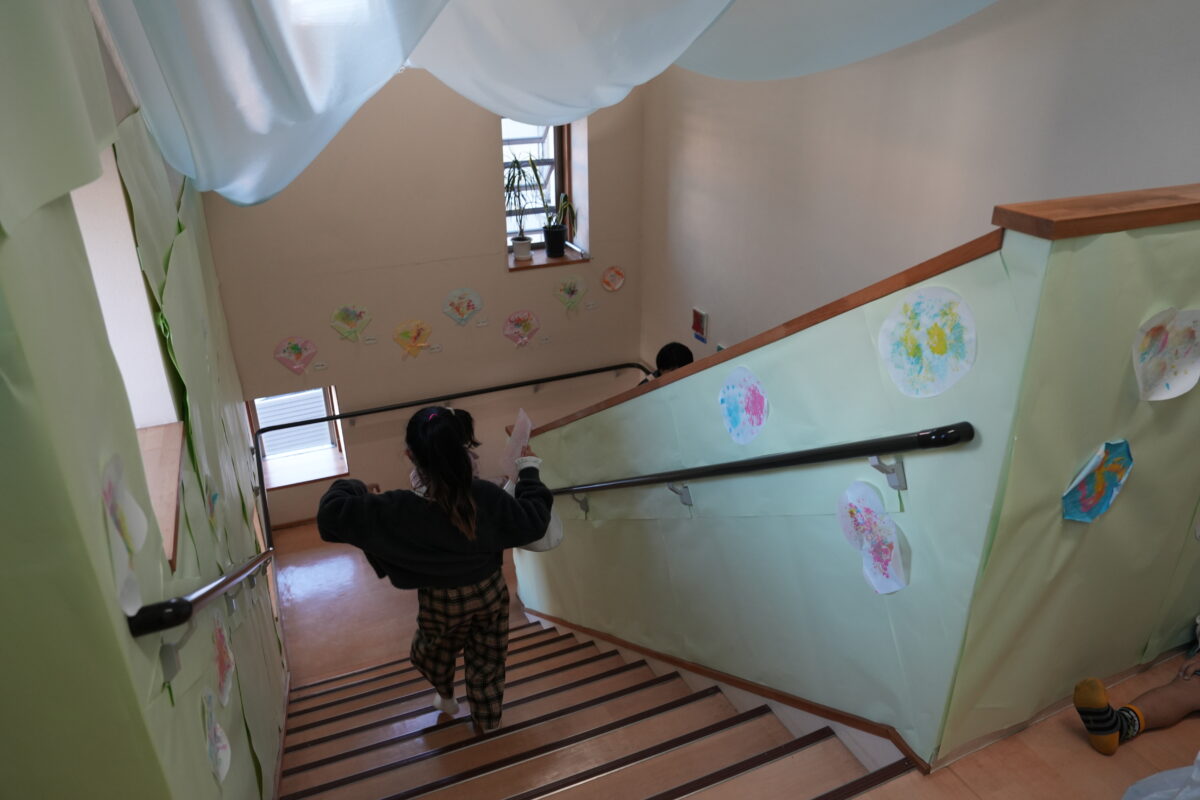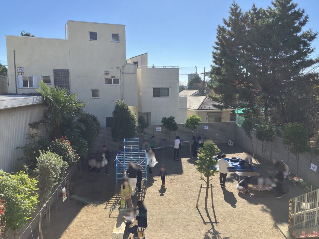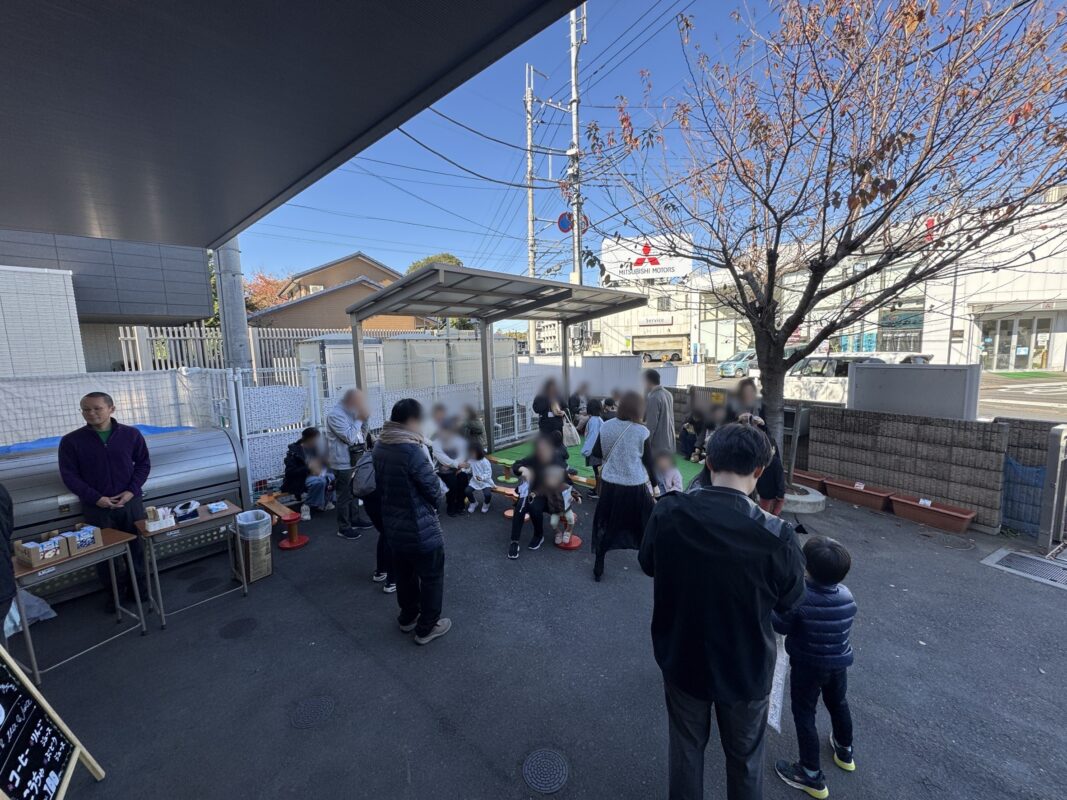 園庭では、JIRO先生手作りの竹とんぼ、割りばし鉄砲をはじめとする昔遊びコーナー。園入口のふらっとカフェと焼き芋も大人気でした。