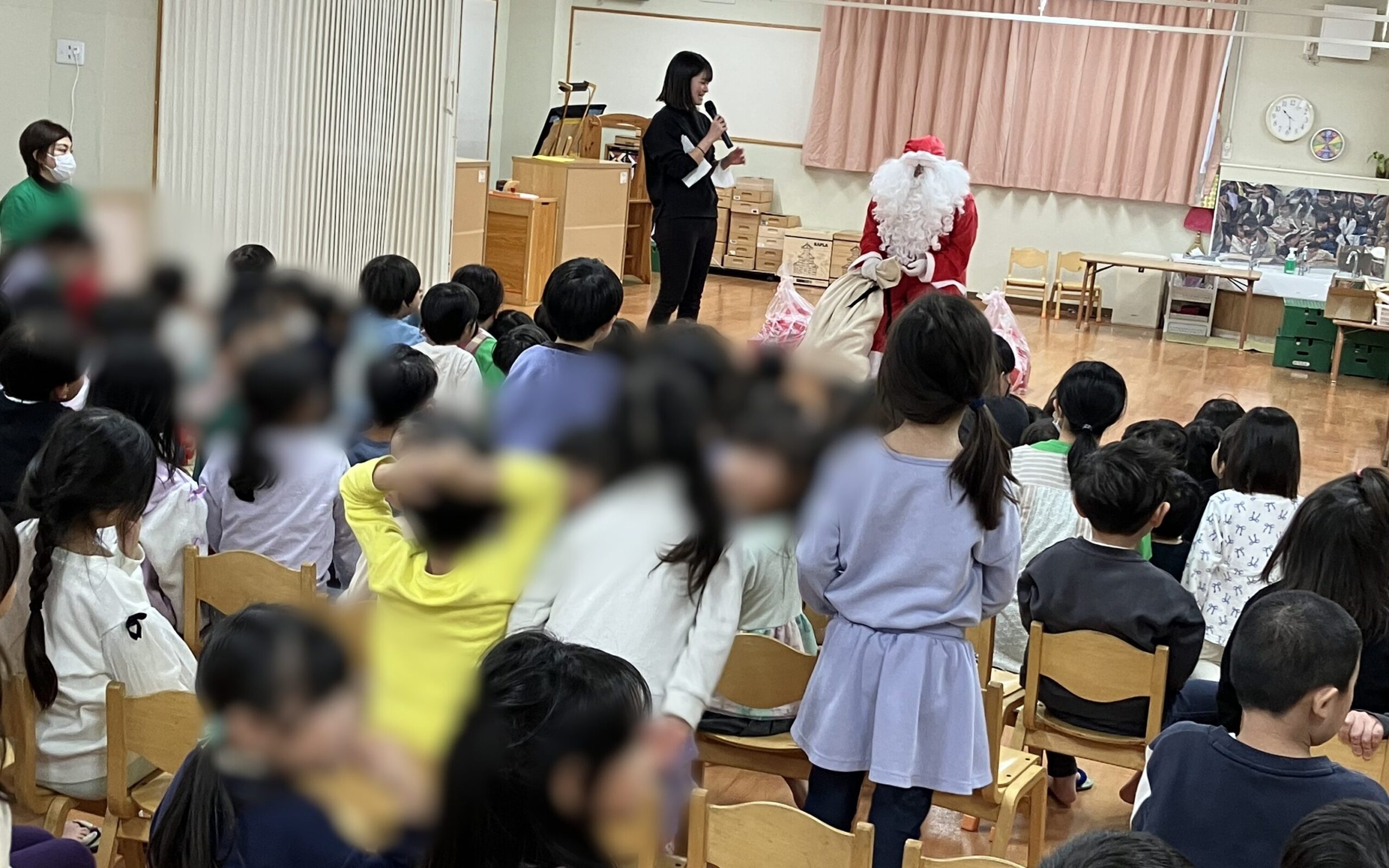そしてサンタさんの登場に子どもたちは大興奮!プレゼントをもらうと「どこから来たの?」「トナカイさんは?」と声をかけていました。